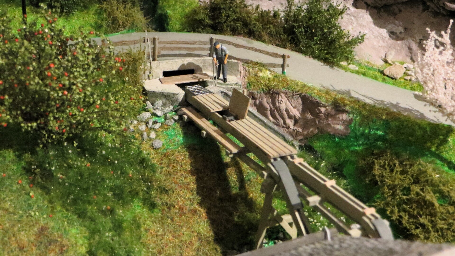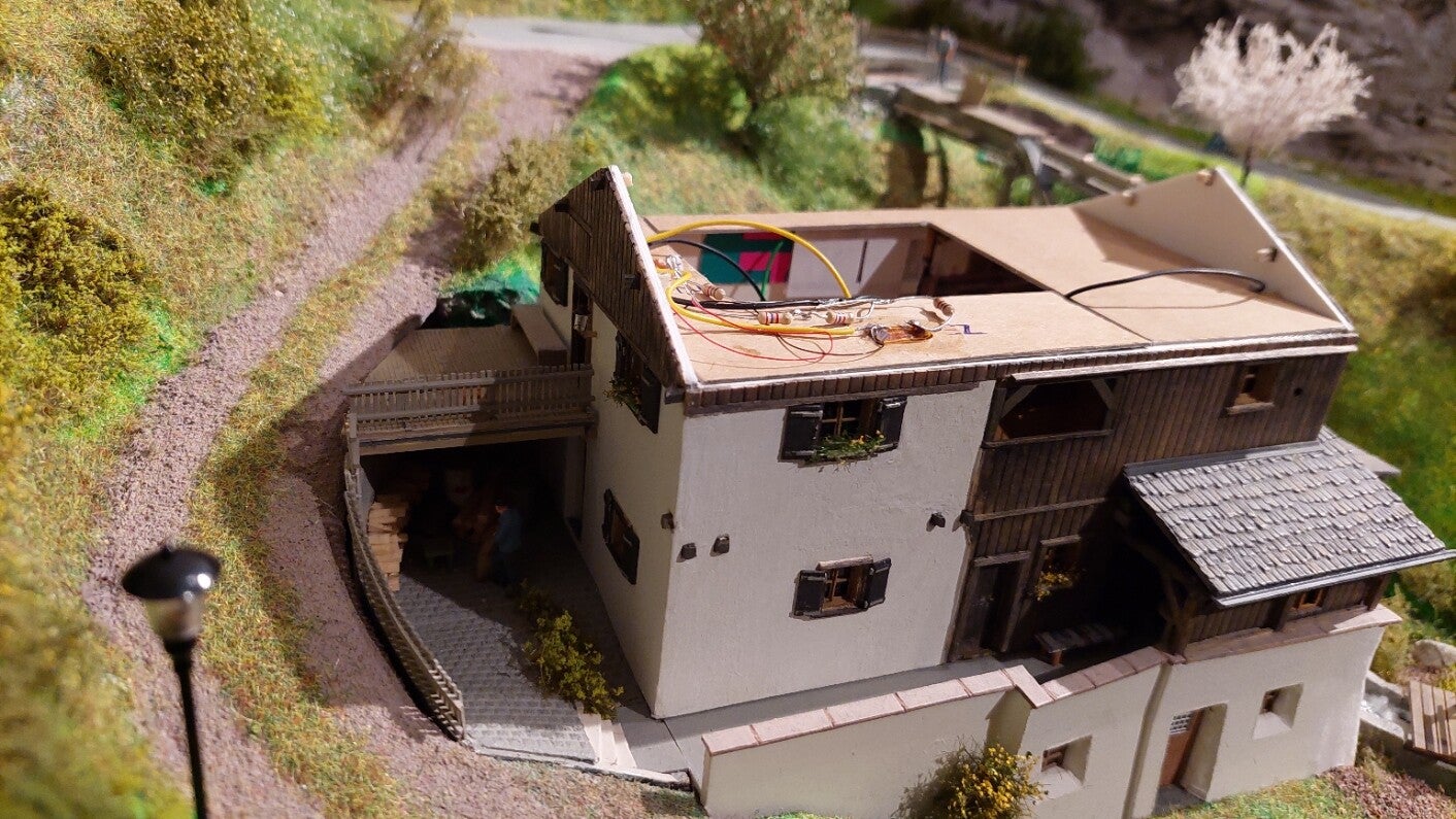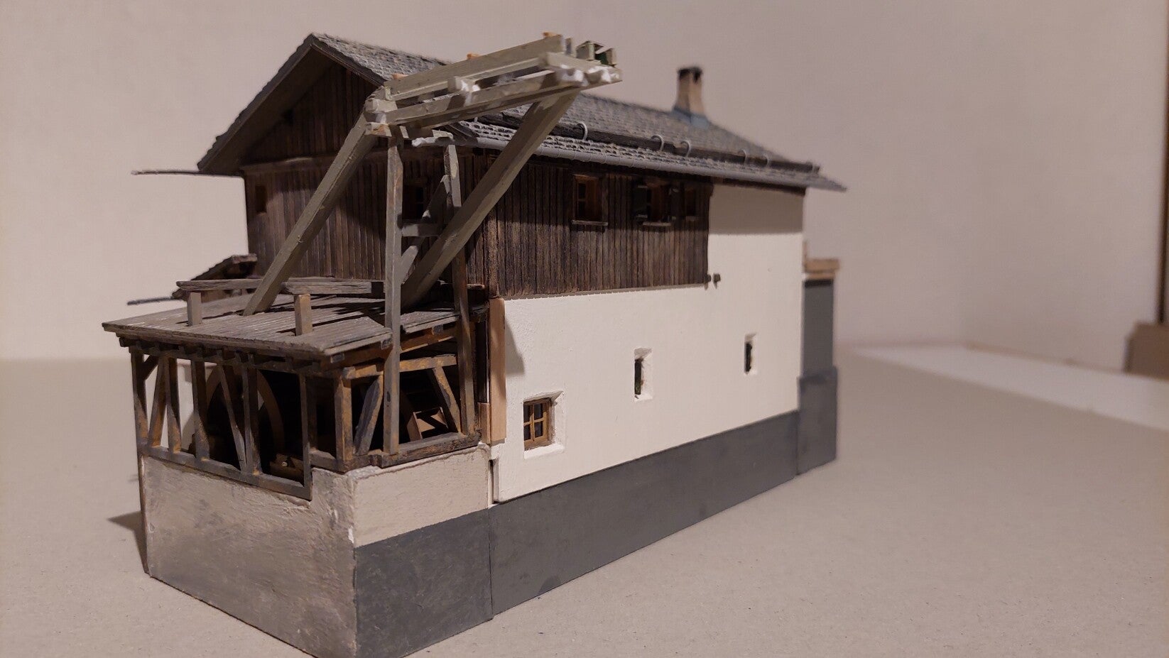 Het model is handgesneden van karton en voorzien van dunne houten beplating met plankenstructuur van Pirovino. Het model bevat twee FALLER motoren voor de beide raderen, die afzonderlijk of tegelijkertijd kunnen draaien. Zoals gebruikelijk op mijn modelbaan wordt het model voorzien van verlichting.