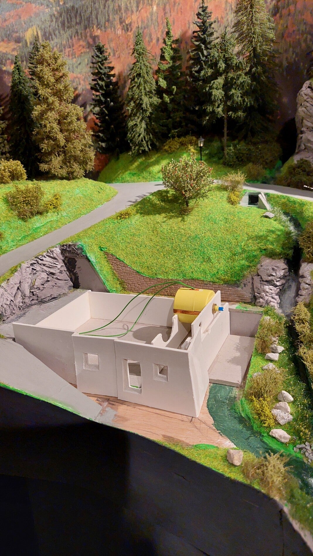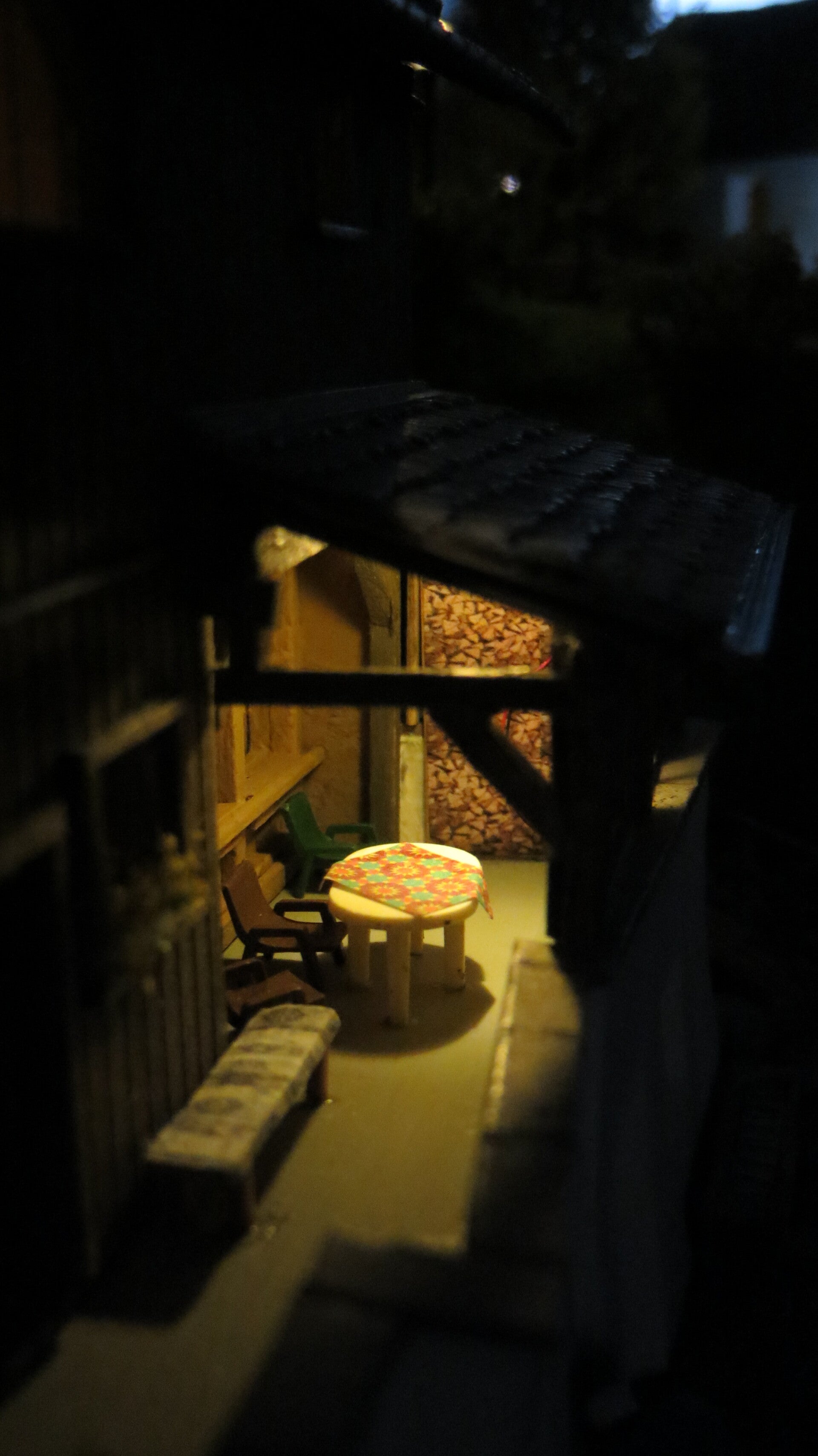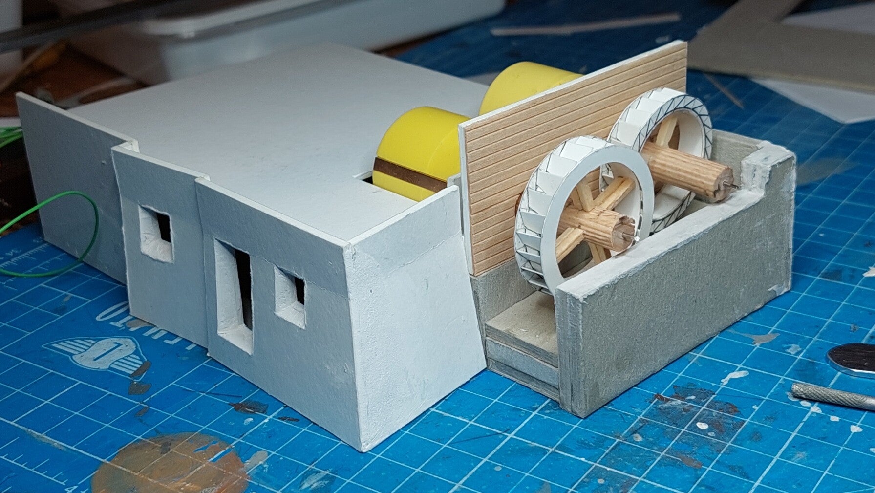 Het model is handgesneden van karton en voorzien van dunne houten beplating met plankenstructuur van Pirovino. Het model bevat twee FALLER motoren voor de beide raderen, die afzonderlijk of tegelijkertijd kunnen draaien. Zoals gebruikelijk op mijn modelbaan wordt het model voorzien van verlichting.