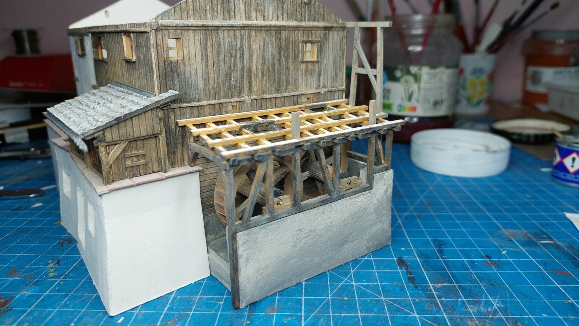 In februari 2026 is het model gereed gekomen, inclusief de aangepaste omgeving. Er zijn wat afwijkingen t.o.v. de werkelijkheid: de aanvoergoten zijn korter (plaatsgebrek), het omringende landschap wijkt af en de behuizing van de waterraderen zijn niet afgetimmerd. In werkelijkheid zijn de waterraderen niet zichtbaar, tenzij de molenaar wat luiken opent.